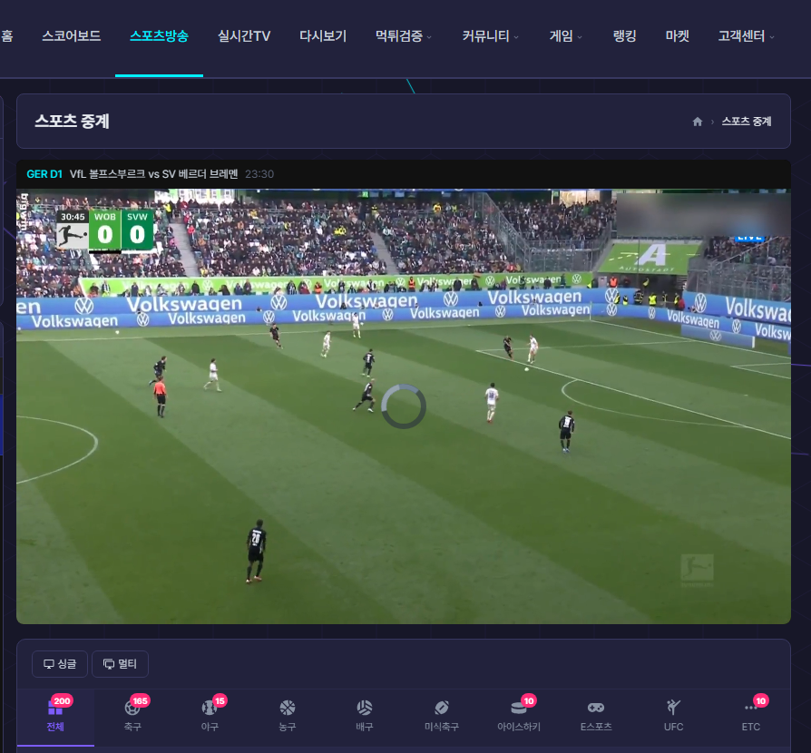 전 종목 스포츠 중계: 해외축구(EPL, 라리가), MLB, NBA 등 실시간 중계 지원.